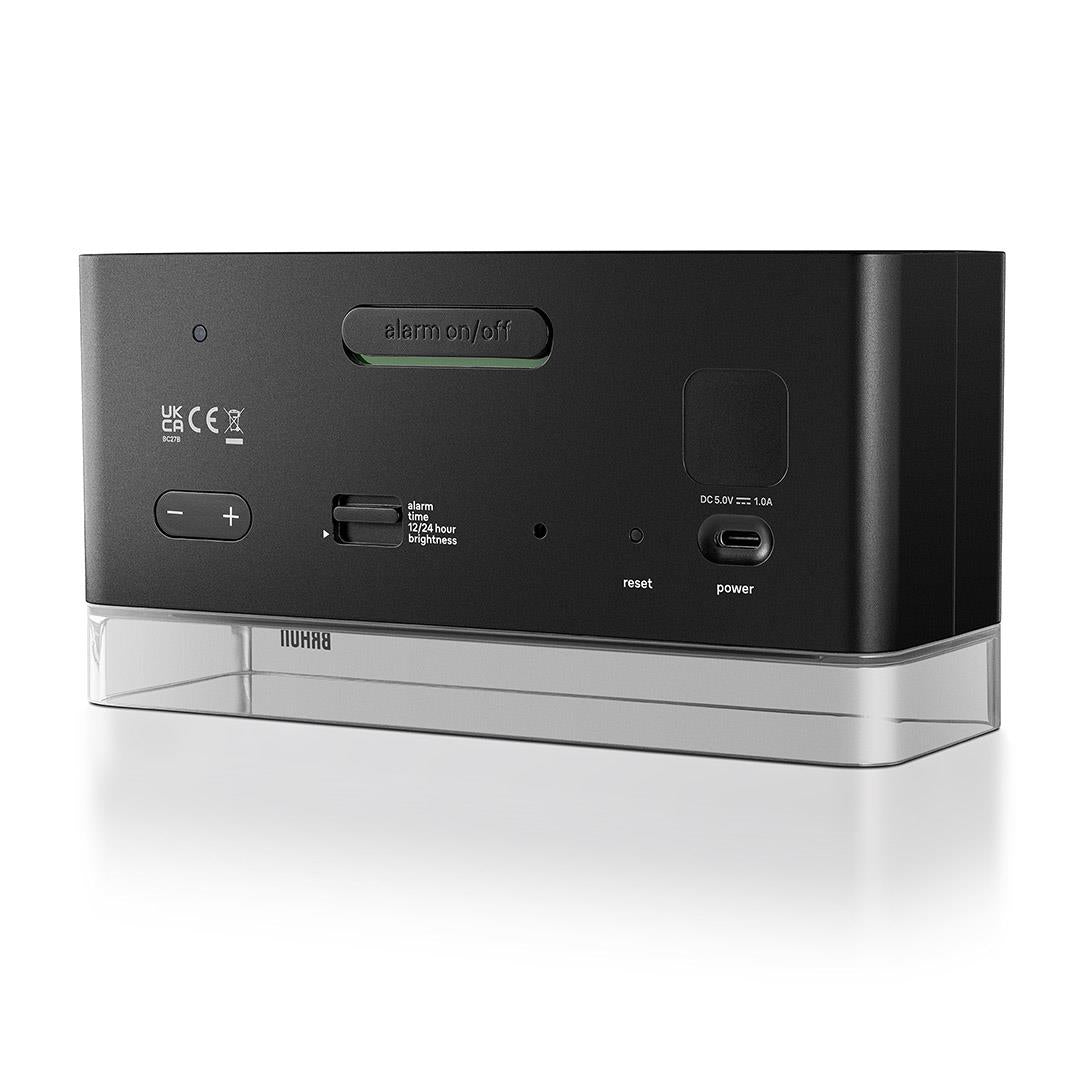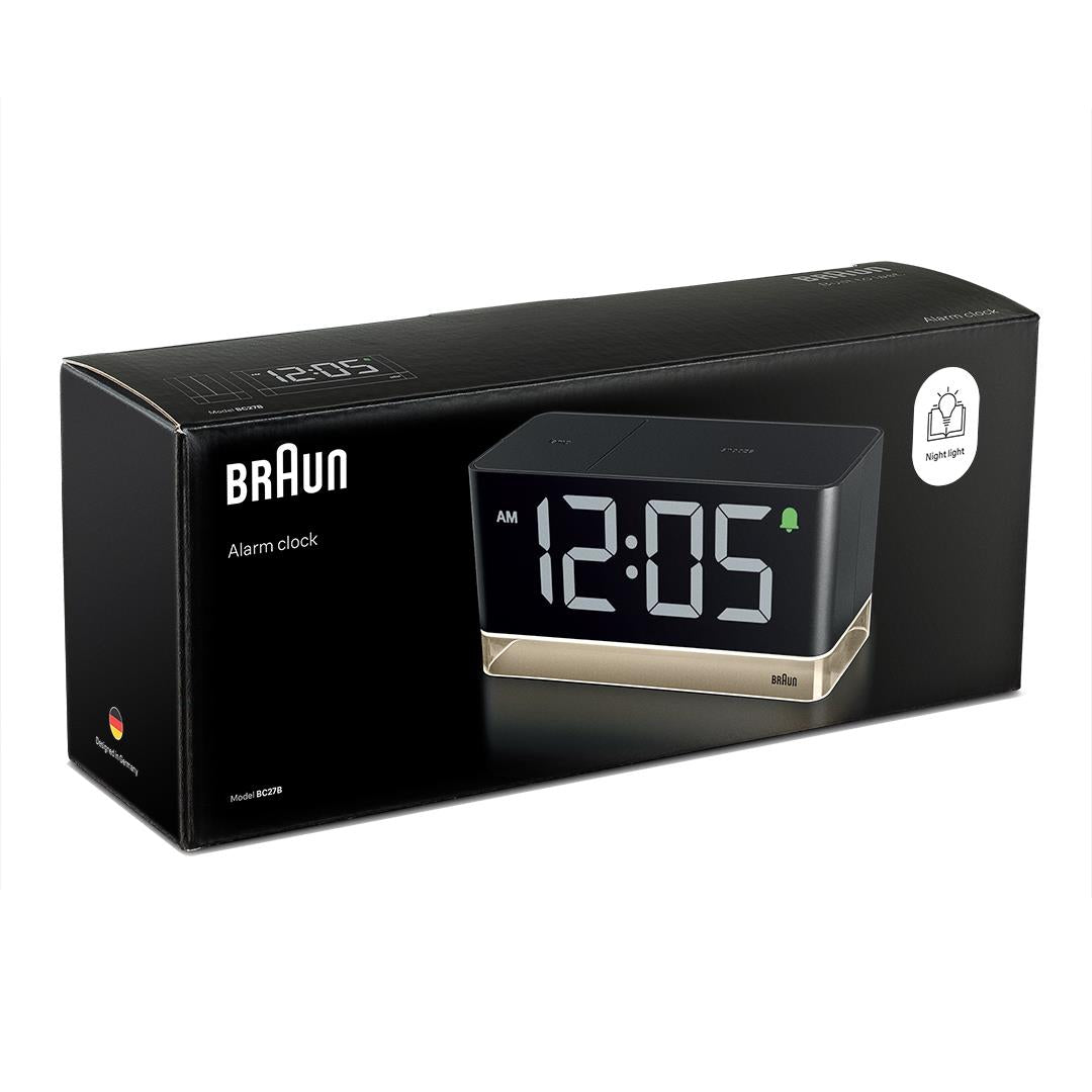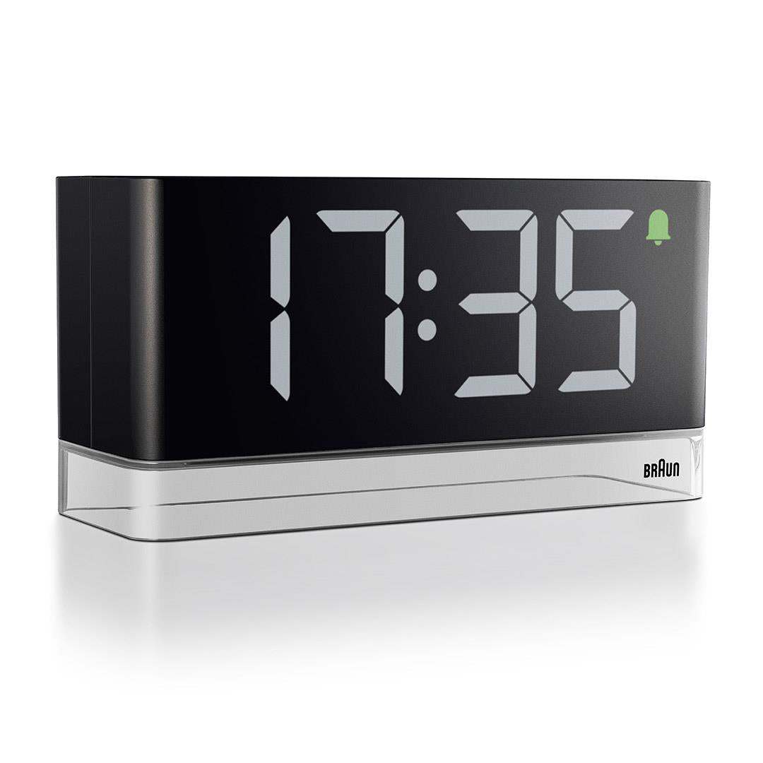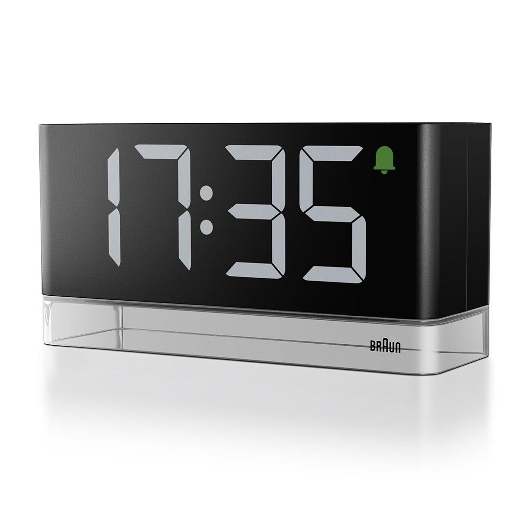 Braun Digital Alarm Clock with Extra Large LED Display, Touch Snooze Zone, Quick Set, Automatically Adjusting Display Brightness, Adjustable Night Reading Light, Beep Alarm, in Black, model BC17B.
